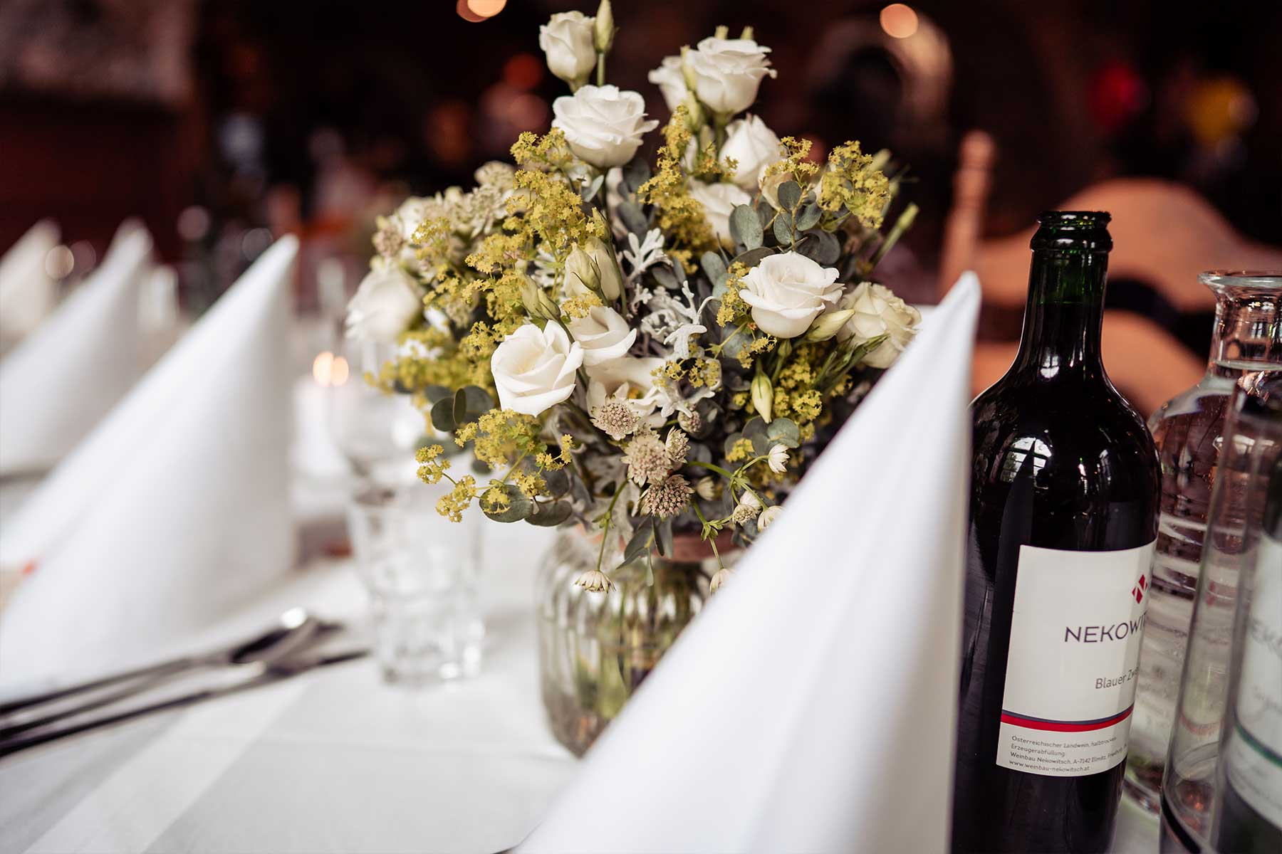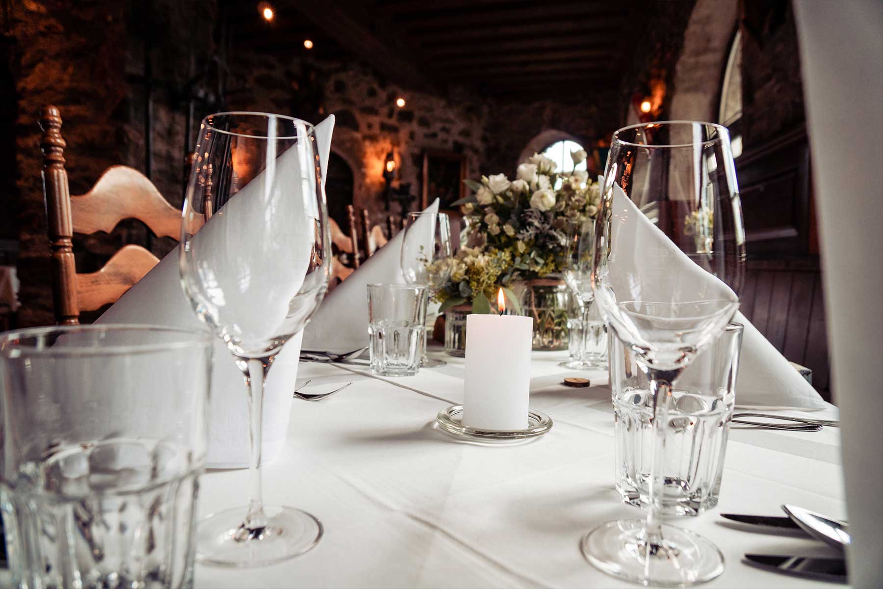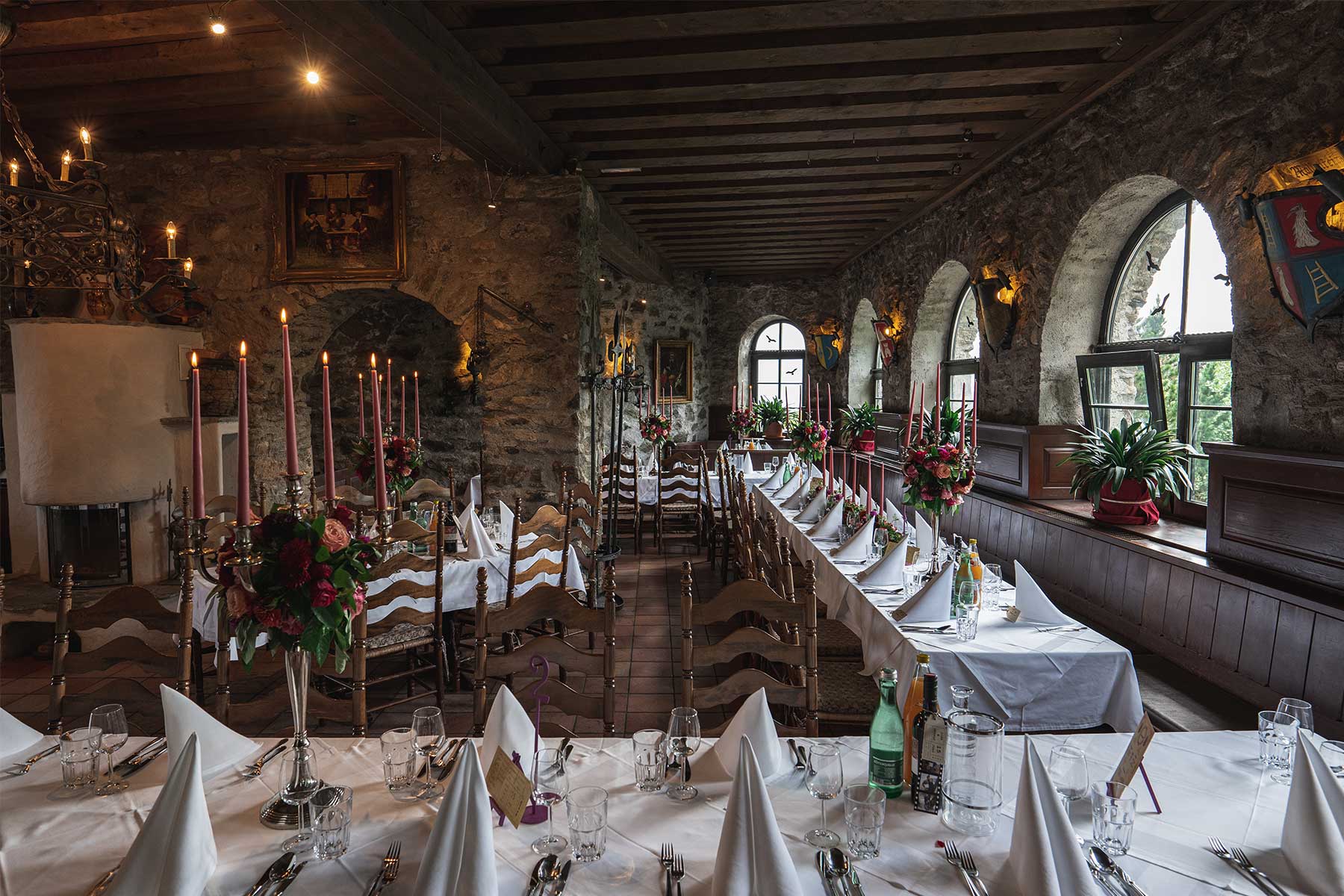 Unsere Gemäuer bieten ein traumhaftes und einzigartiges Ambiente, um den schönsten Tag eines Paares zu feiern. Ob mit einer kleinen oder größeren Gesellschaft — unsere Mägde und Knappen verwandeln für Euren großen Tag das Restaurant in eine märchenhafte Kulisse.